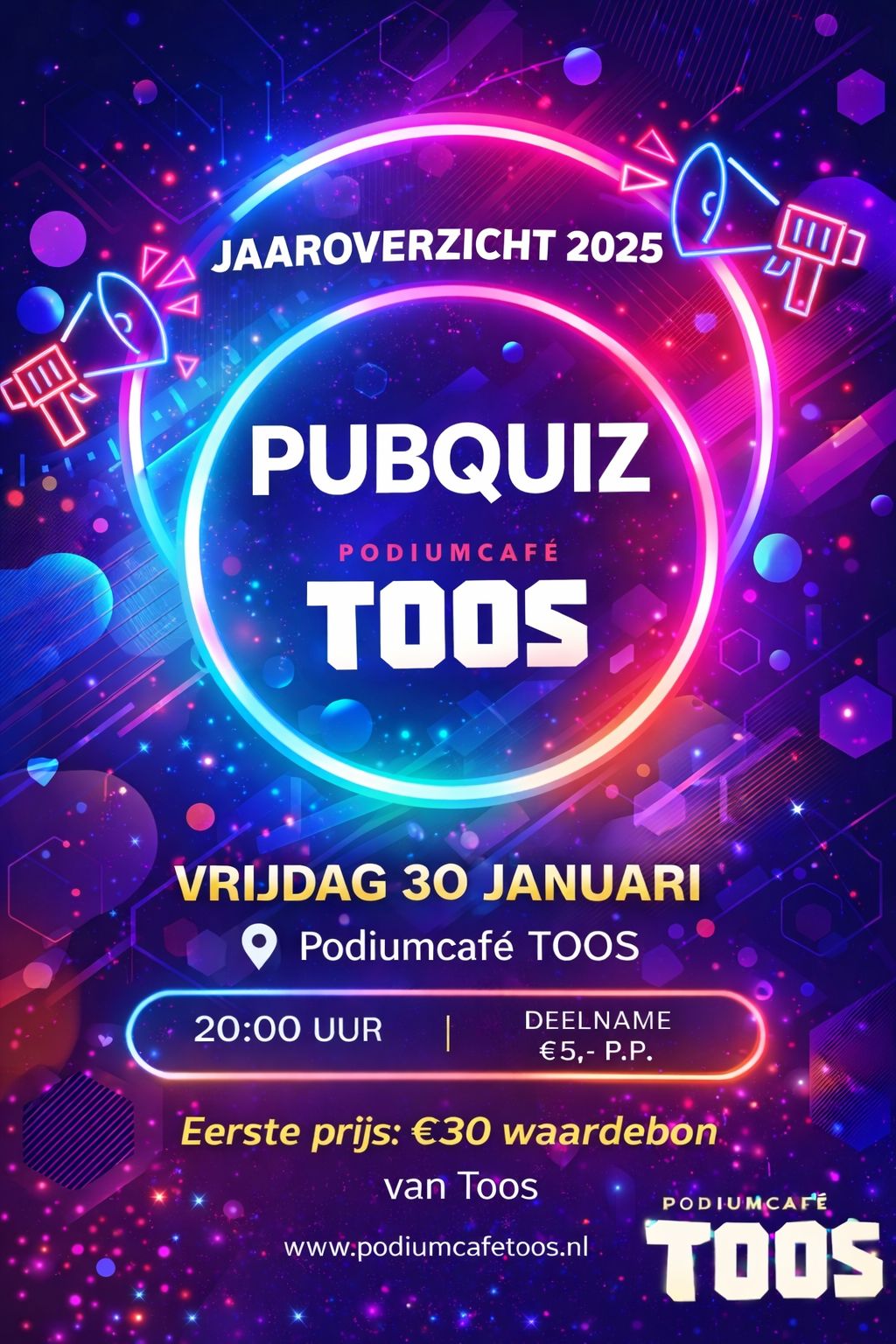 Vrijdag 30 januari testen we jullie kennis tijdens de eerste pubquiz van het nieuwe jaar met als thema: Het jaaroverzicht van 2025!