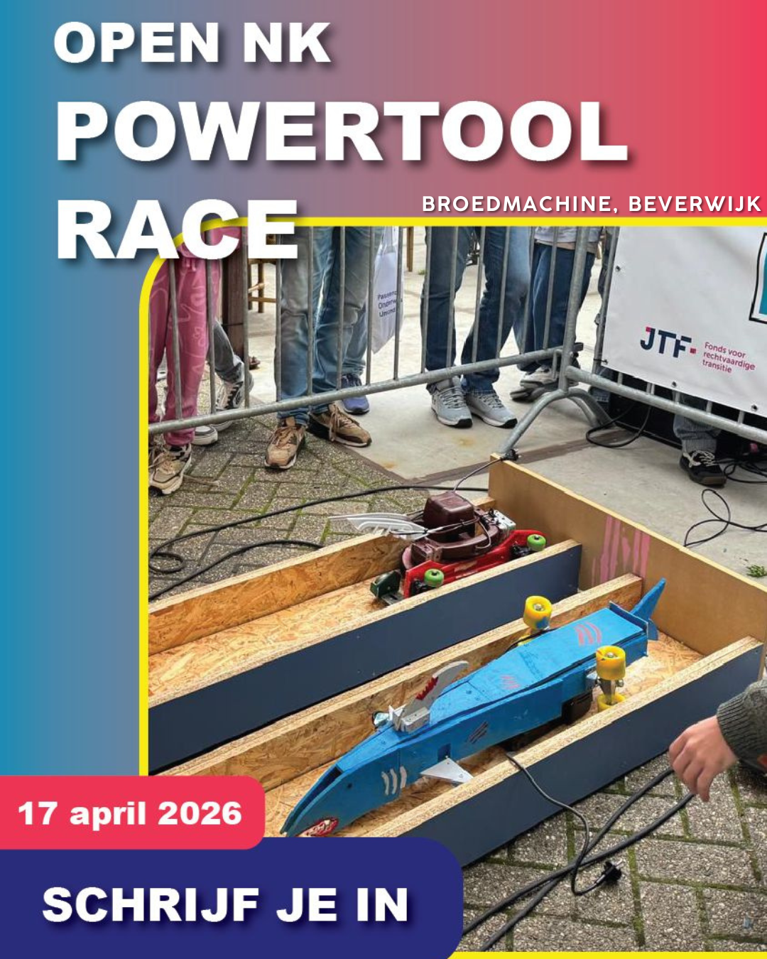 Tijdens de Powertool Race op vrijdag 17 april nemen bedrijven, scholen en particulieren het tegen elkaar op met zelfgebouwde racecars van elektrisch handgereedschap ⚡️ Van schuurmachine tot cirkelzaag - met...